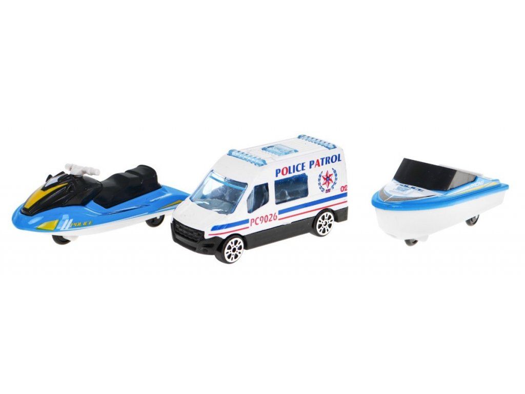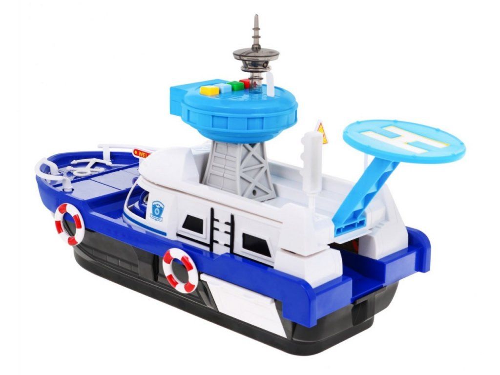 Policejní loď na baterie Police Boat je ideální hračkou každého malého námořníka. Napomáhá rozvoji manuální zručnosti, logického myšlení a představivosti. Je vybavena řídící věží s tlačítky, které vydávají různé zvuky a světelné efekty. S otevřené paluby vede do vody skluzavka, další jsou potom na bočních stranách loďe. Součástí lodě je přistávací plocha vrtulníku, malé policejní autíčko, motorový člun a vodní skútr. Hračka je určena pro děti od 36 měsíců věku.