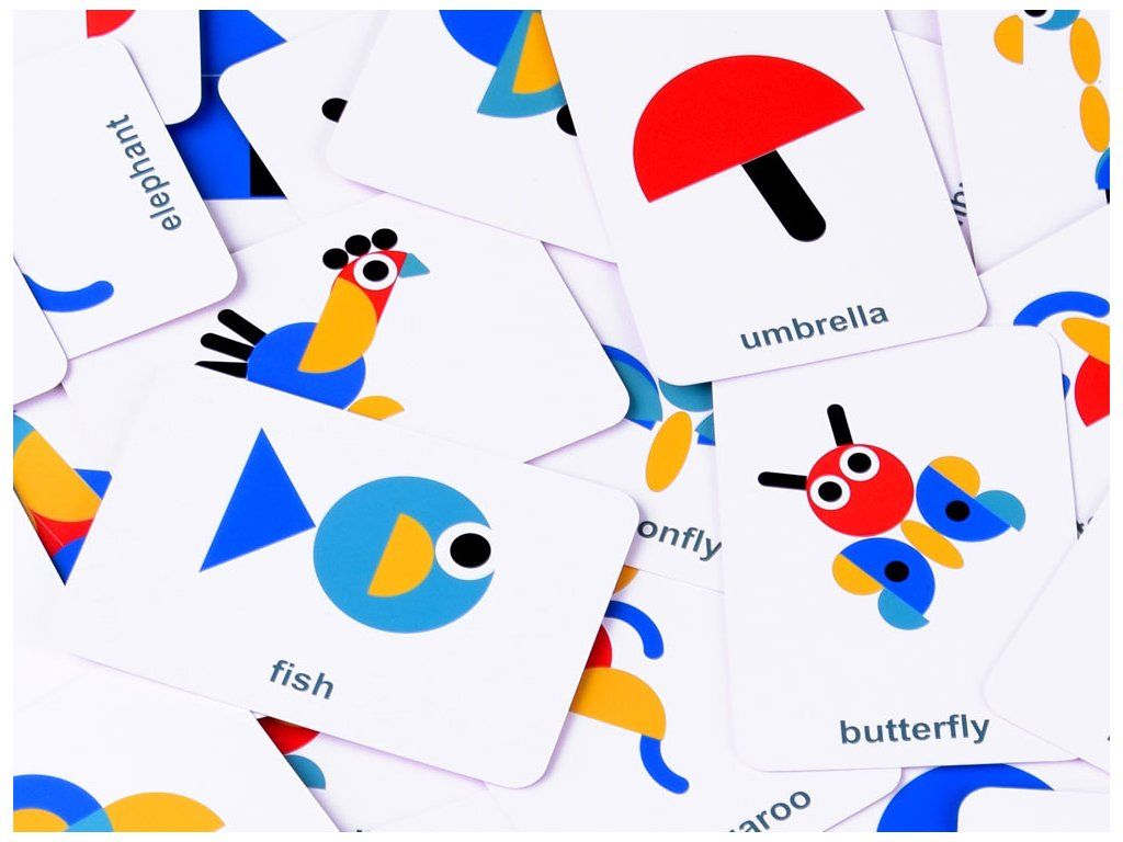 nebo tvary vymyšlené dítětem. Obrázky na kartách jsou podepsány v angličtině, což dále obohatí zábavu při učení angličtiny.