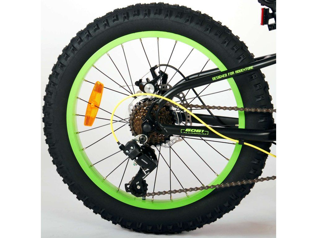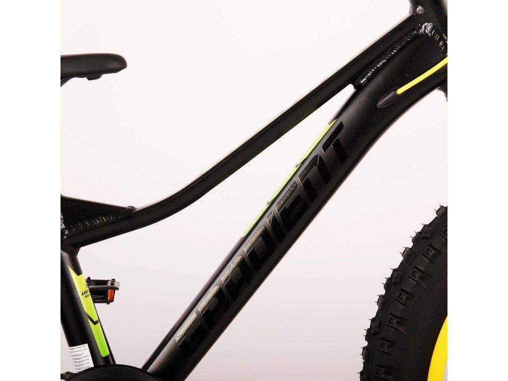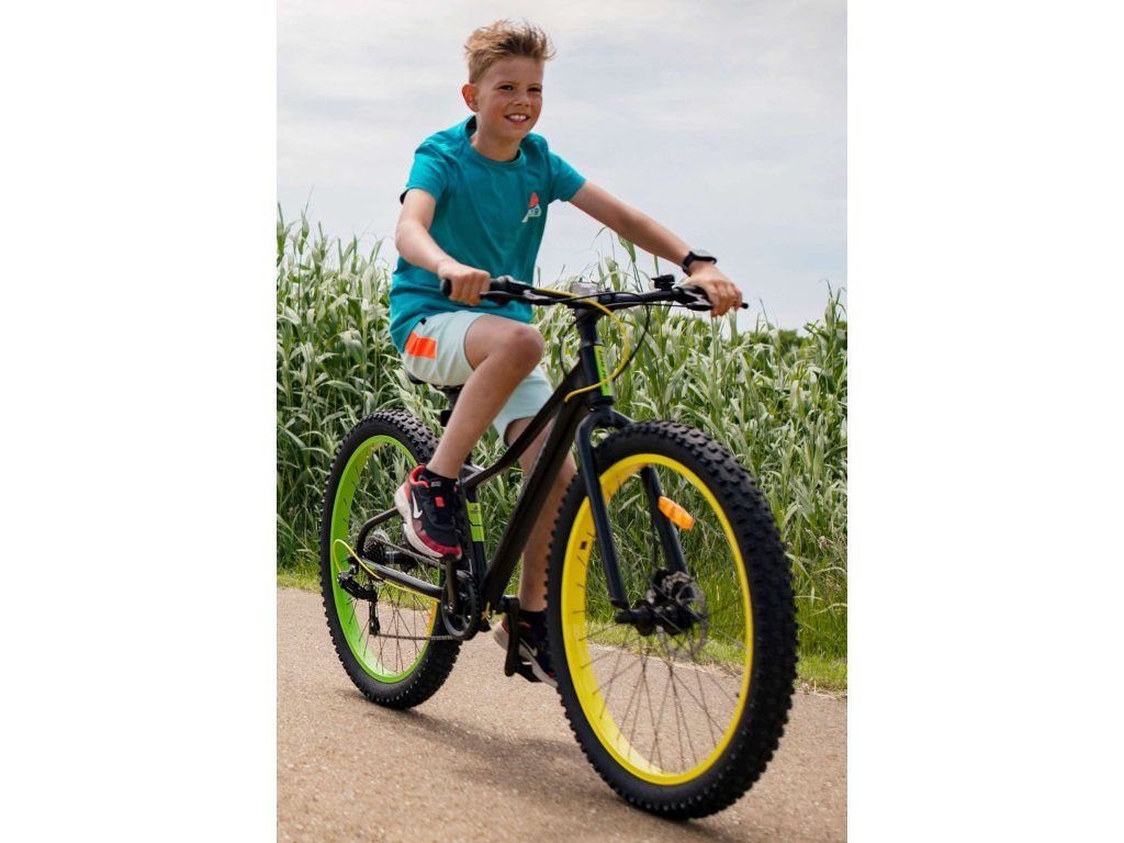 Kvalitní černé kolo s nápaditými žlutými a zelenými prvky, které poskytne vašemu dítěti radost z jízdy po mnoho let!