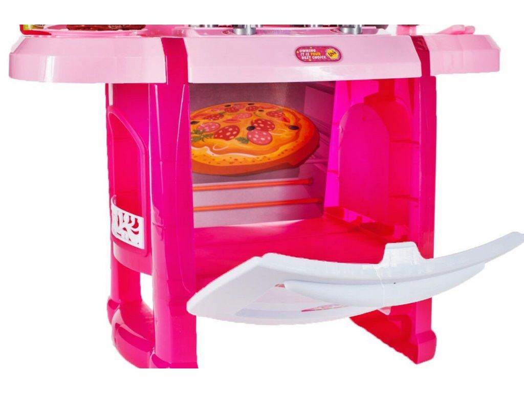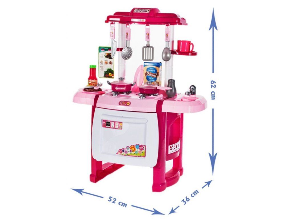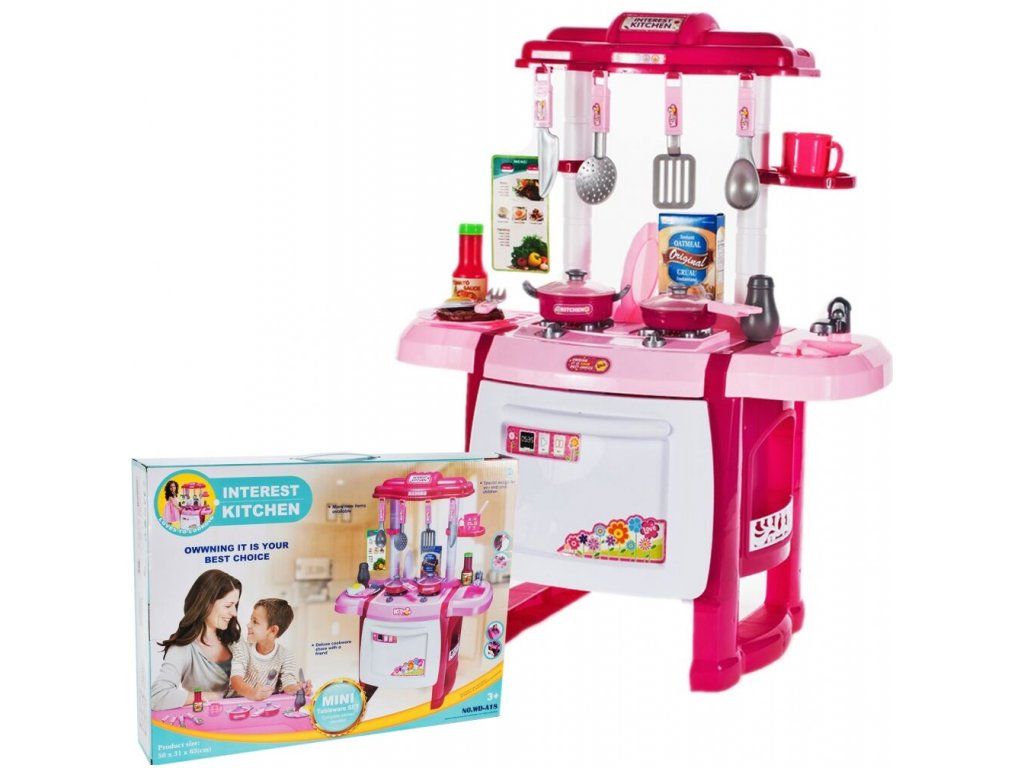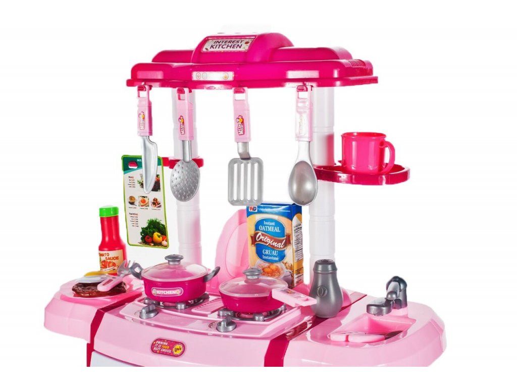 Interaktivní dětská kuchyňka Interest Kitchen se zvukovými a světelnými efekty je určena pro děti od 3 let věku. Je vybavena příslušenstvím jako jsou příbory, talíře, hrnce, imitace potravin a mnoho dalších. Vaše dítě se určitě s touto velkou kuchyňkou nudit nebude. Trouba kuchyňky je otevírací. Po otočení vypínačů se rozsvítí hořáky a spustí zvuk napodobující smažení a bublání. Je vyrobena z plastu v pestrobarevném provedení.