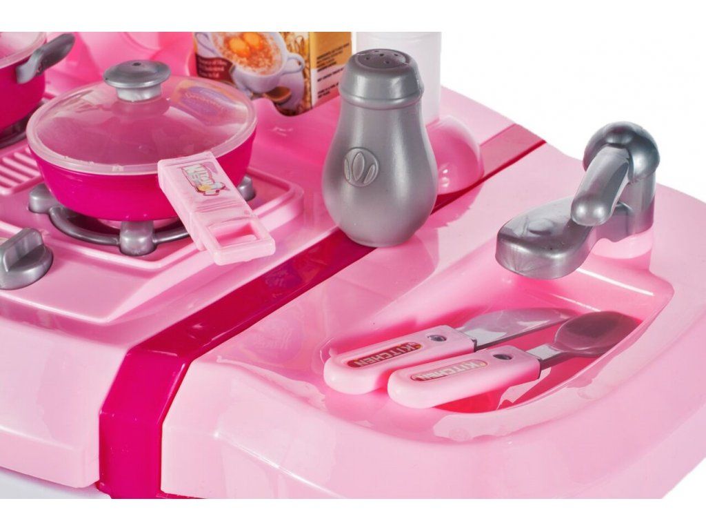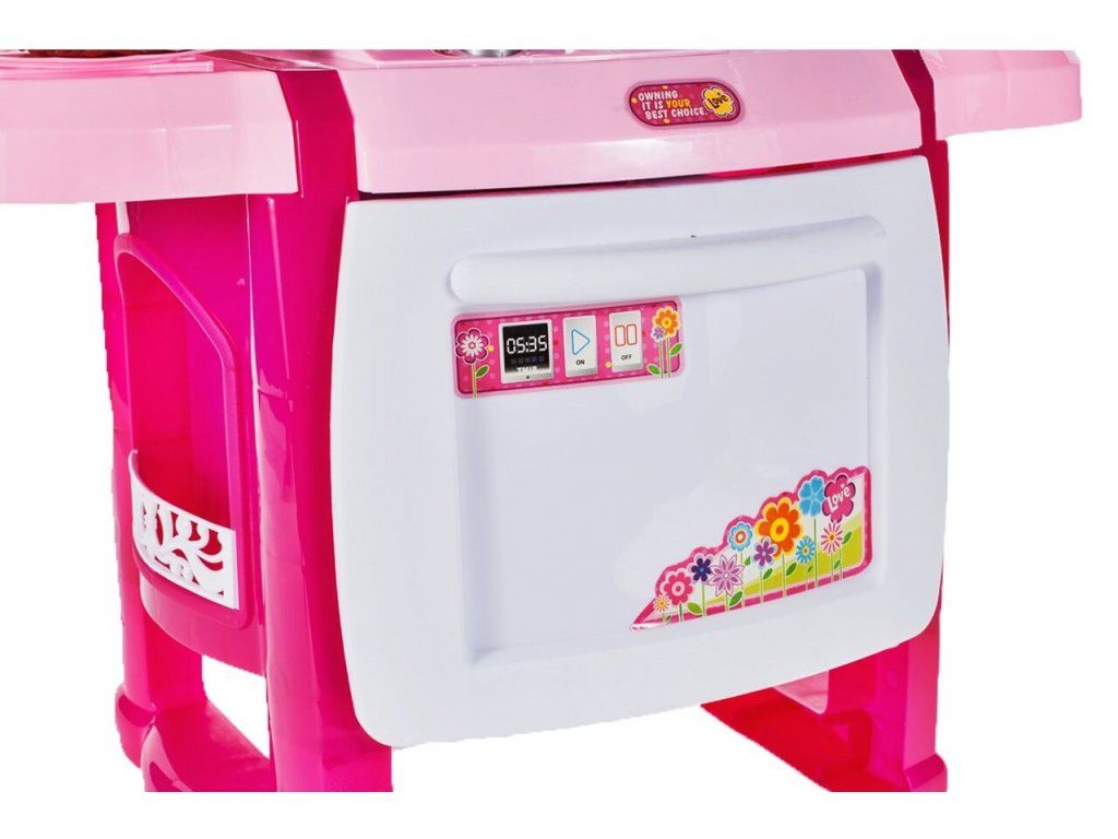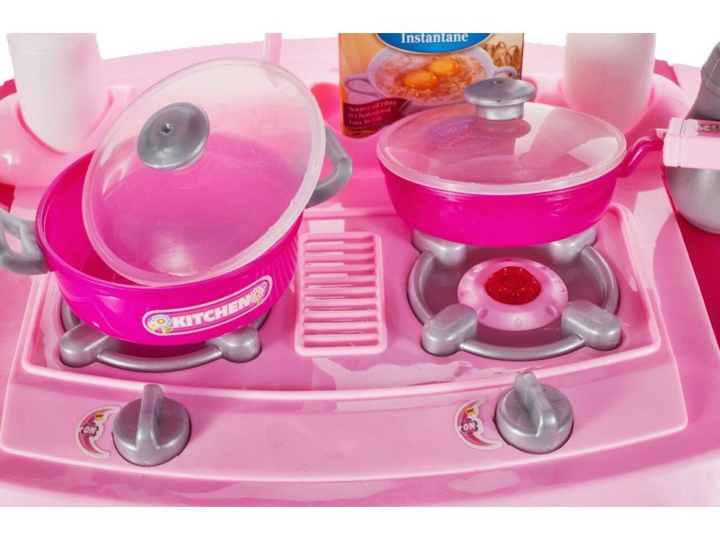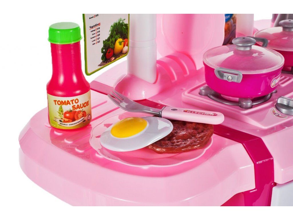 Interaktivní dětská kuchyňka Interest Kitchen se zvukovými a světelnými efekty je určena pro děti od 3 let věku. Je vybavena příslušenstvím jako jsou příbory, talíře, hrnce, imitace potravin a mnoho dalších. Vaše dítě se určitě s touto velkou kuchyňkou nudit nebude. Trouba kuchyňky je otevírací. Po otočení vypínačů se rozsvítí hořáky a spustí zvuk napodobující smažení a bublání. Je vyrobena z plastu v pestrobarevném provedení.