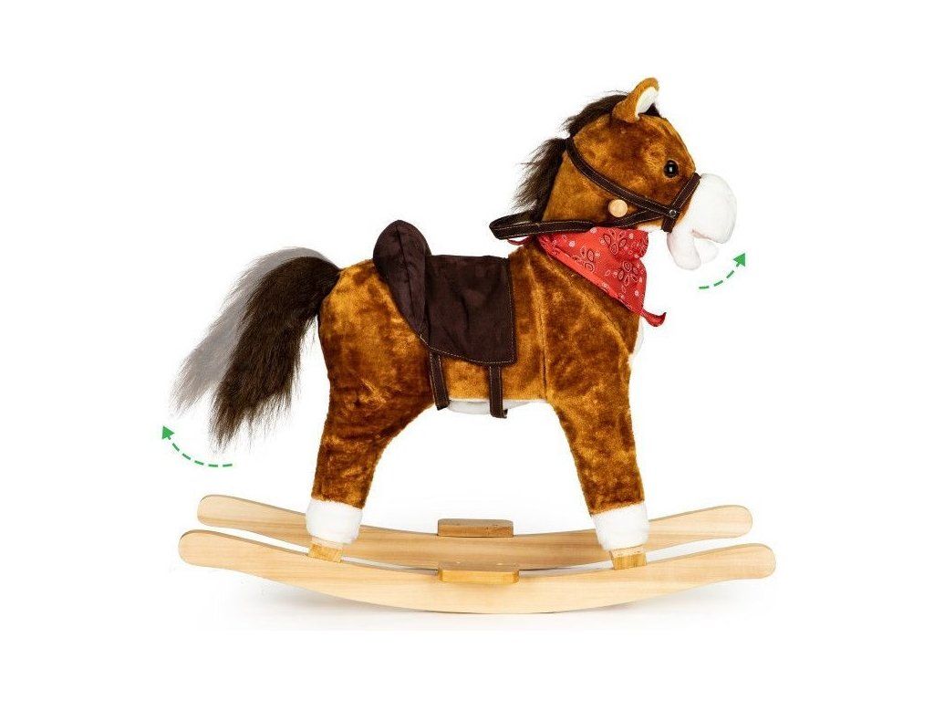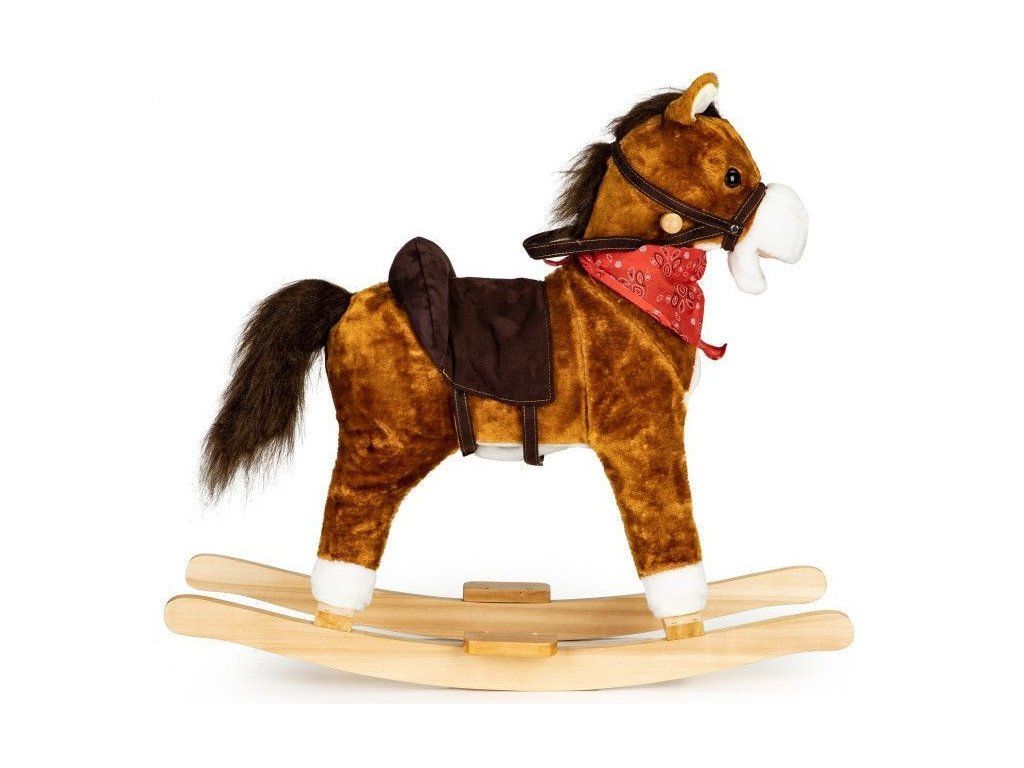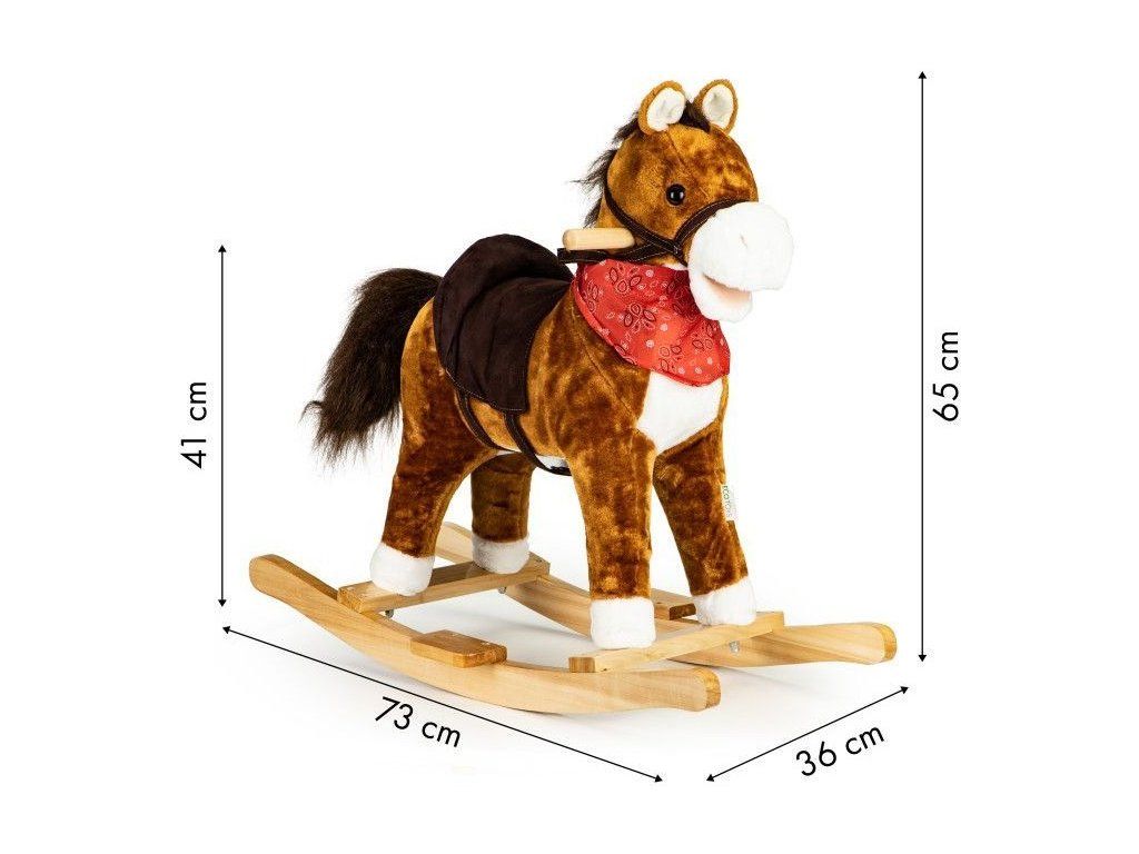 Houpací kůň je hračka snů mnoha dětí, kterou si oblíbí chlapci i dívky, starší i mladší. Tento kouzelný kůň skrývá v uších tlačítka, která po stisknutí aktivují melodii a realistické zvuky cvalu a ržání, což přináší dětem radost a pocit skutečné jízdy. Dřevěné běhouny zajišťují stabilitu při hře a houpání, zatímco dodatečné "nohy" na běhounech zajišťují bezpečnost při nastupování a vystupování. Tato kombinace stability a bezpečnosti činí houpacího koně ideálním společníkem pro každé dítě.