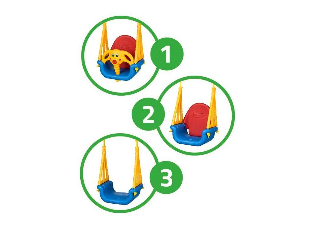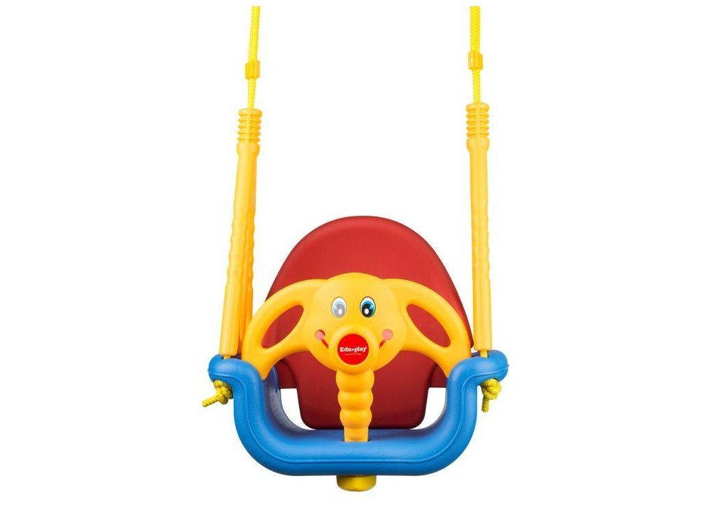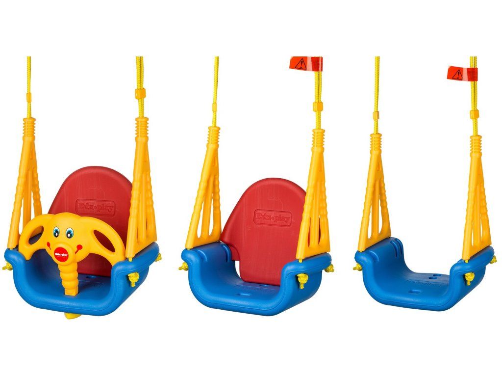 Ecotoys dětská houpačka 3v1 Slon je určena pro děti od 6 měsíců do 7 let věku. Je opatřena demontovatelným opěradlem a zábranou proti vypadnutí. Sedátko je vyrobeno z protiskluzového materiálu a je odolné proti povětrnostním vlivům. Maximální délka závěsu je 130 cm a lze ji upravit pomocí kovových spon. Doporučená výška sedátka od země je 40 cm.