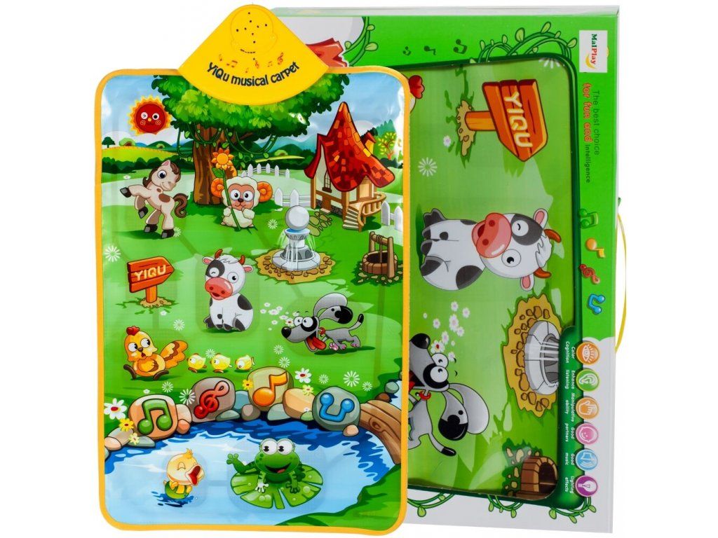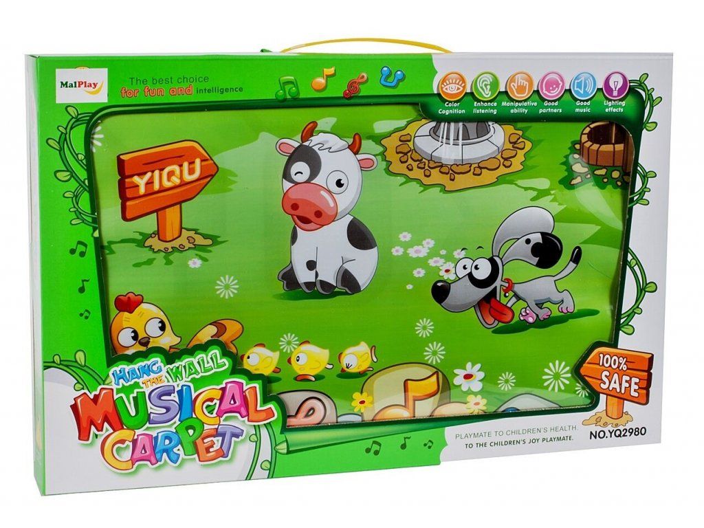 Barevná hrací deka Musical Carpet je určena dětem od 3 měsíců věku. Pomáhá rozvoji dítěte pomocí rozpoznávání zvuků a zároveň rozvíjí jeho představivost. Zmáčknutím zvířátka na dece se ozve jeho zvuk. Dále je deka vybavena světýlky, regulací hlasitosti a veselou melodií. Lze ji také připevnit na stěnu nebo na postýlku.