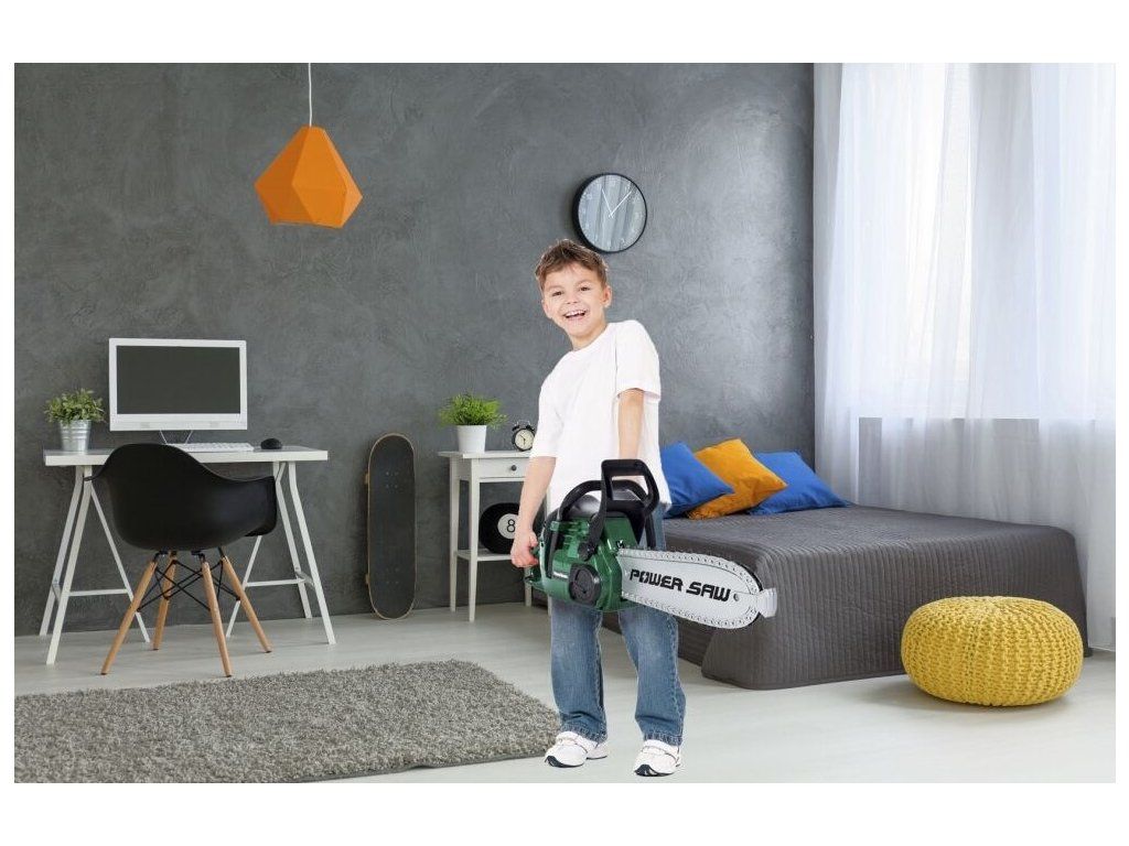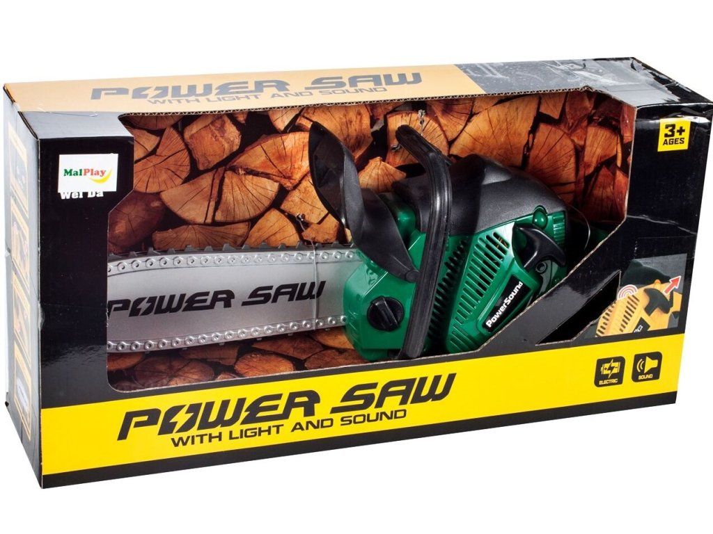 Dětská motorová pila Chain Saw je ideální hračkou pro každého malého pomocníka na zahradě nebo i doma. Pila má otočný gumový pás, který imituje řetěz. Při práci vydává pila zvuky skutečného řezání. Hračka je určena pro děti od 36 měsíců věku.