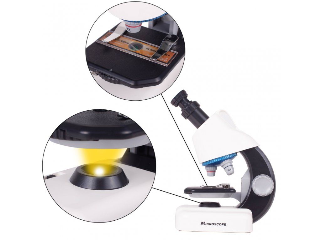 Kompletně vybavený mikroskop Little Scientific bude skvělým dárkem pro každého malého vědce, který rád pozoruje věci, které nelze vidět pouhým okem. Díky mikroskopu bude Vaše dítě poznávat svět kolem nás z bližší vzdálenosti než obvykle. Mikroskop ukáže malému průzkumníkovi nádherný svět mikrobiologie, vědy a přírody. Mikroskop má otočný 360° okulár a tři druhy zvětšení 4x /10x /40x . Maximální možné zvětšení je 640x. Je vybavený také vestavěnou LED žárovkou pro osvětlení vyšetřovaných vzorků. Mikroskop má vše, co potřebujete k zobrazení mikrosvěta. Hračka je určena pro děti od 6 let.