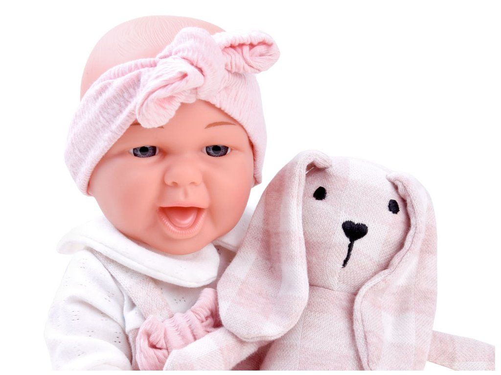 Panenka Sylvie v realistickém provedení udělá ohromnou radost každé holčičce. Je vyrobena z materiálu velmi příjemného na dotek a má nádherné růžovo-bílé oblečení. Součástí sady jsou také 2 dudlíky a plyšový králíček. Hračka je určena pro děti od 18 měsíců věku.