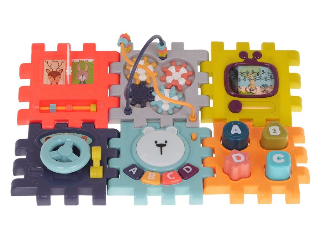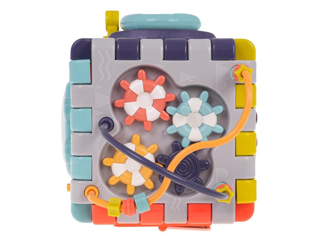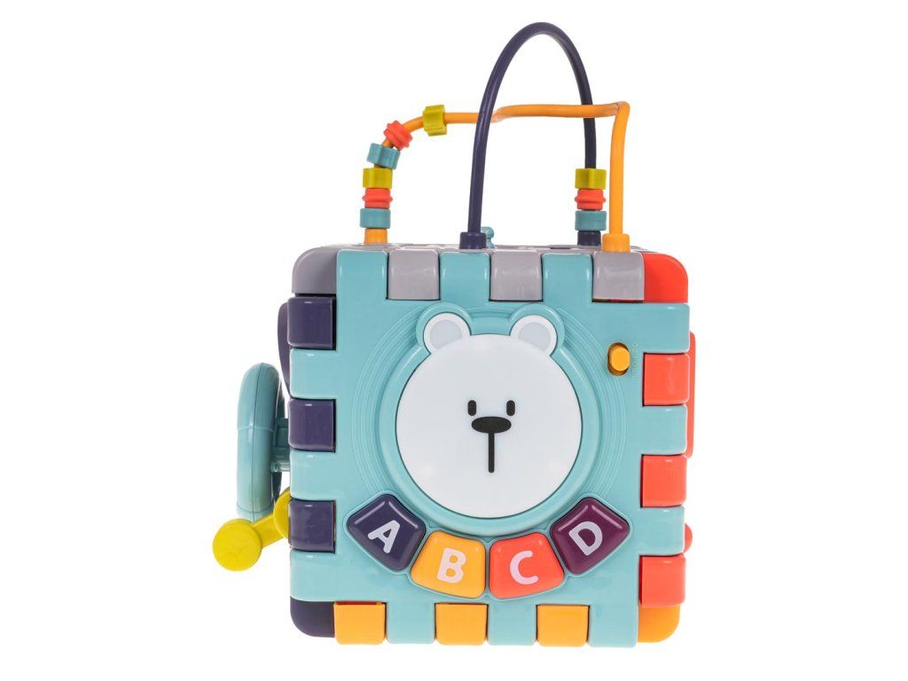 Multifunkční interaktivní kostka se zvukovými a světelnými efekty je určena pro děti od 18 měsíců a nabízí spoustu zábavy a učení. Každá strana kostky poskytuje různé interaktivní aktivity, které zaujmou dítě a podpoří jeho rozvoj. Zvukové a světelné efekty v kombinaci s pestrými barvami stimulují pozornost a vybízejí k objevování. Kostku lze rozložit a hrát si s jednotlivými částmi naplocho. Napájí se třemi AAA bateriemi (nejsou součástí balení).