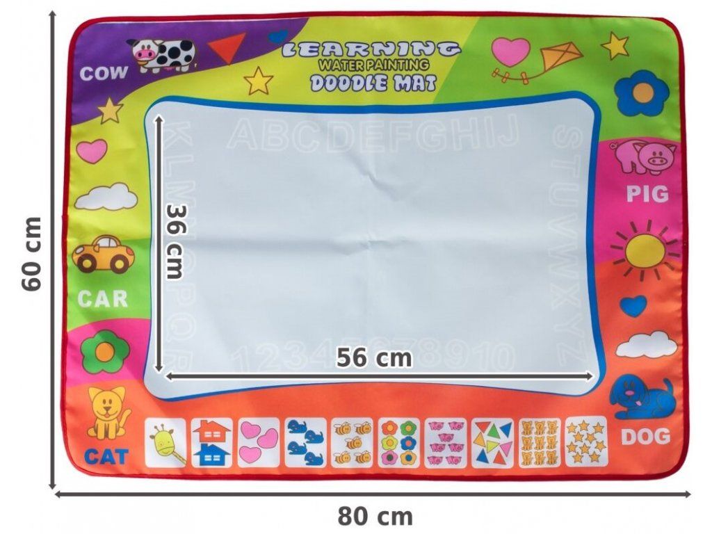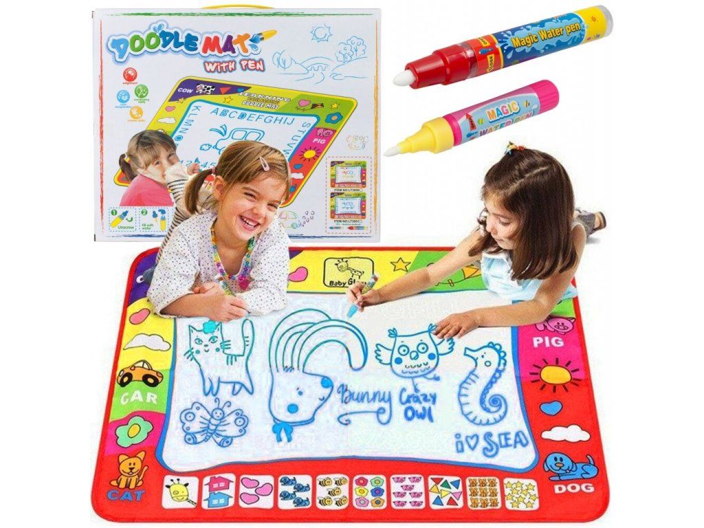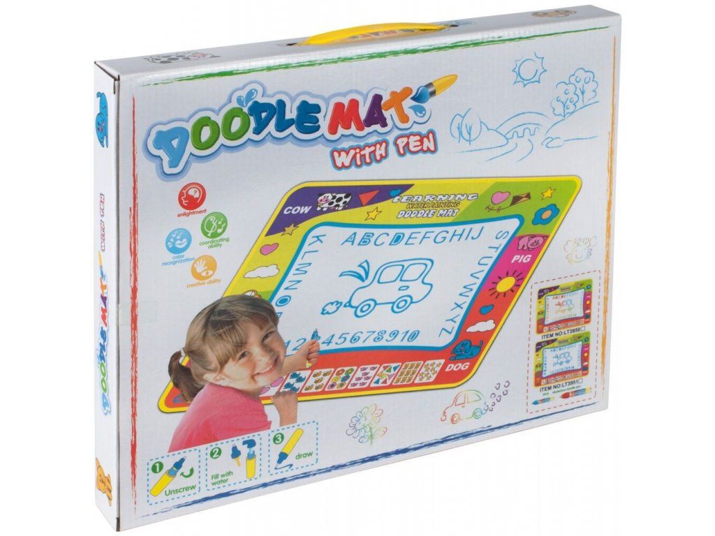 Dětská vodní deka pro kreslení Doodle Mat je ideální hračkou pro rozvoj dětské kreativity a tvořivosti. Přiložené fixy "Magic Peny" stačí naplnit vodou a hra může začít. Po určité době vše co dítě nakreslí zmizí. Zábava je tak nekonečná. Hračka je určena pro děti od 36 měsíců věku.