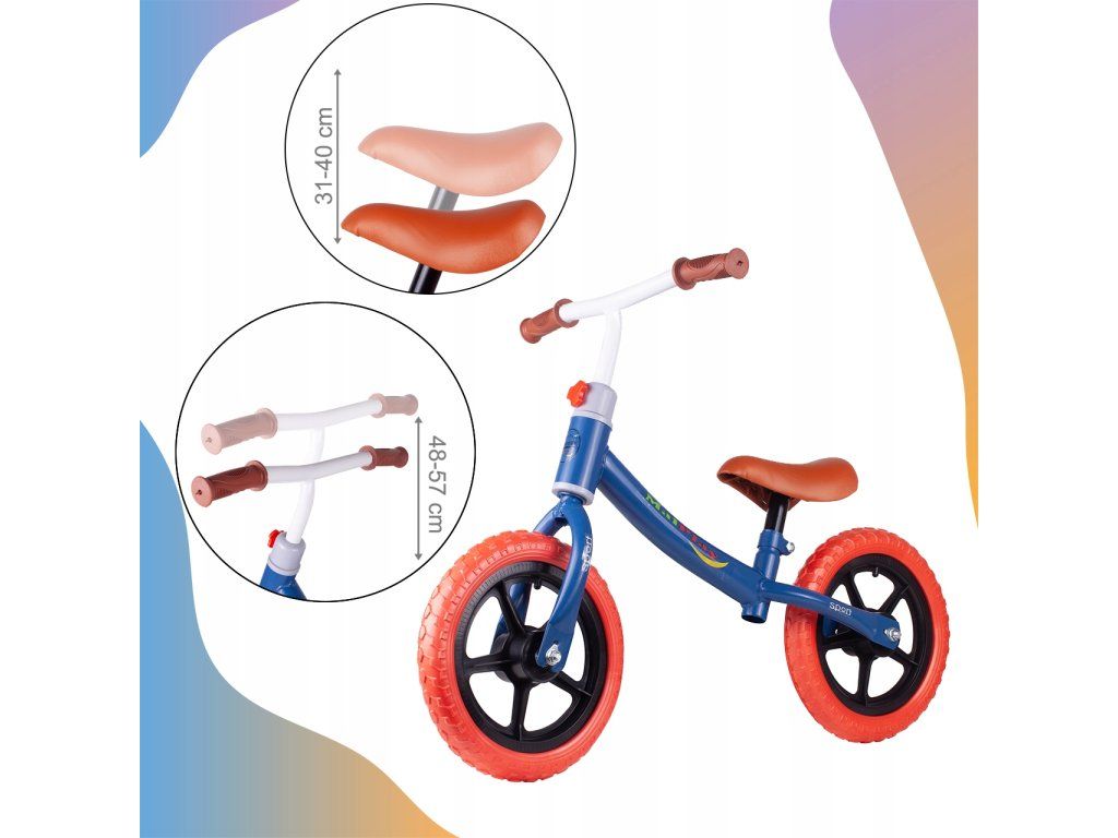 Dětské odrážedlo Trevis s 12" palcovými  EVA koly a vícebarevnému provedení zaručí Vašemu dítěti spoustu zábavy a legrace. Dítě se naučí udržovat stabilitu a je ideálním prostředkem před přechodem na klasické jízdní kolo. Výška řídítek a sedadla se dají nastavit. Díky kovovému rámu je velmi lehké. Konce řídítek mají protiskluzovou. Odrážedlo je určeno pro děti od 2 let věku.