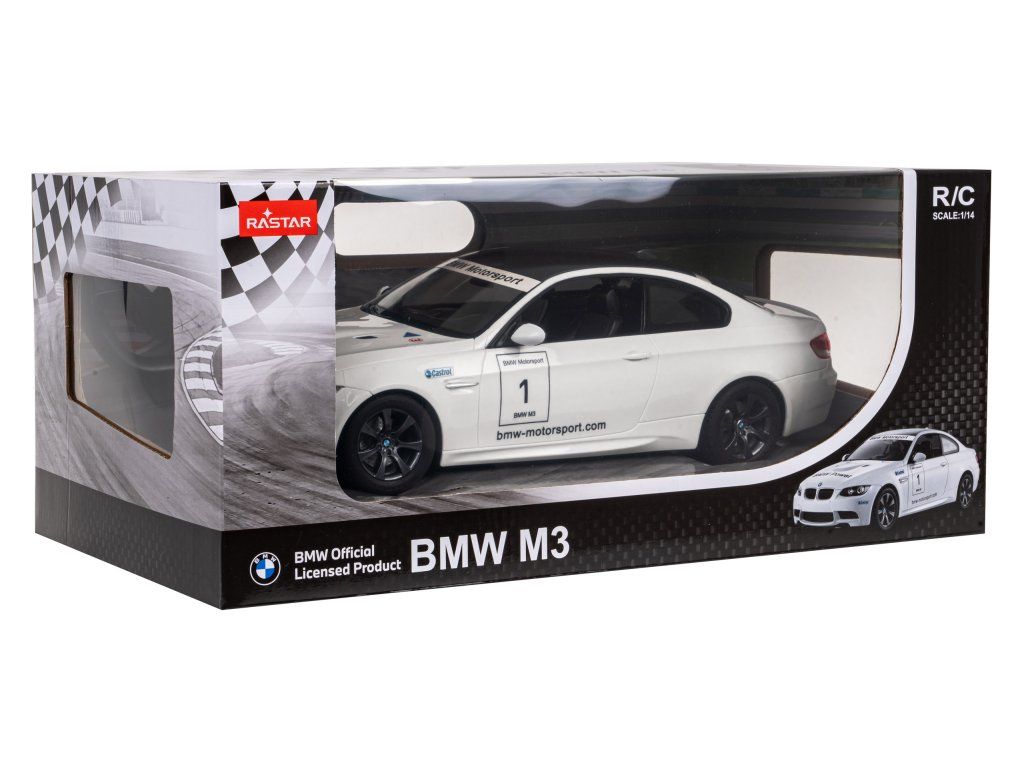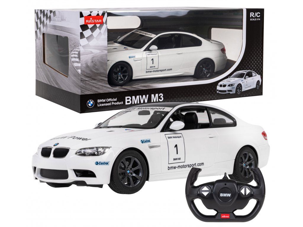 Rastar auto na dálkové ovládání BMW M3 s dálkovým ovládáním 2,4 GHz umožňuje jízdu dopředu a dozadu, zatáčí doprava a doleva. Je osazeno gumovými koly s velmi dobrou přilnavostí a je vybaveno tlumiči nárazů. Je vybaveno předním a zadním LED osvětlením. Dálkové ovládání i autíčko jsou napájeny bateriemi, které nejsou součástí balení. Autíčko je vyrobeno z odolného plastu a má certifikaci CE.